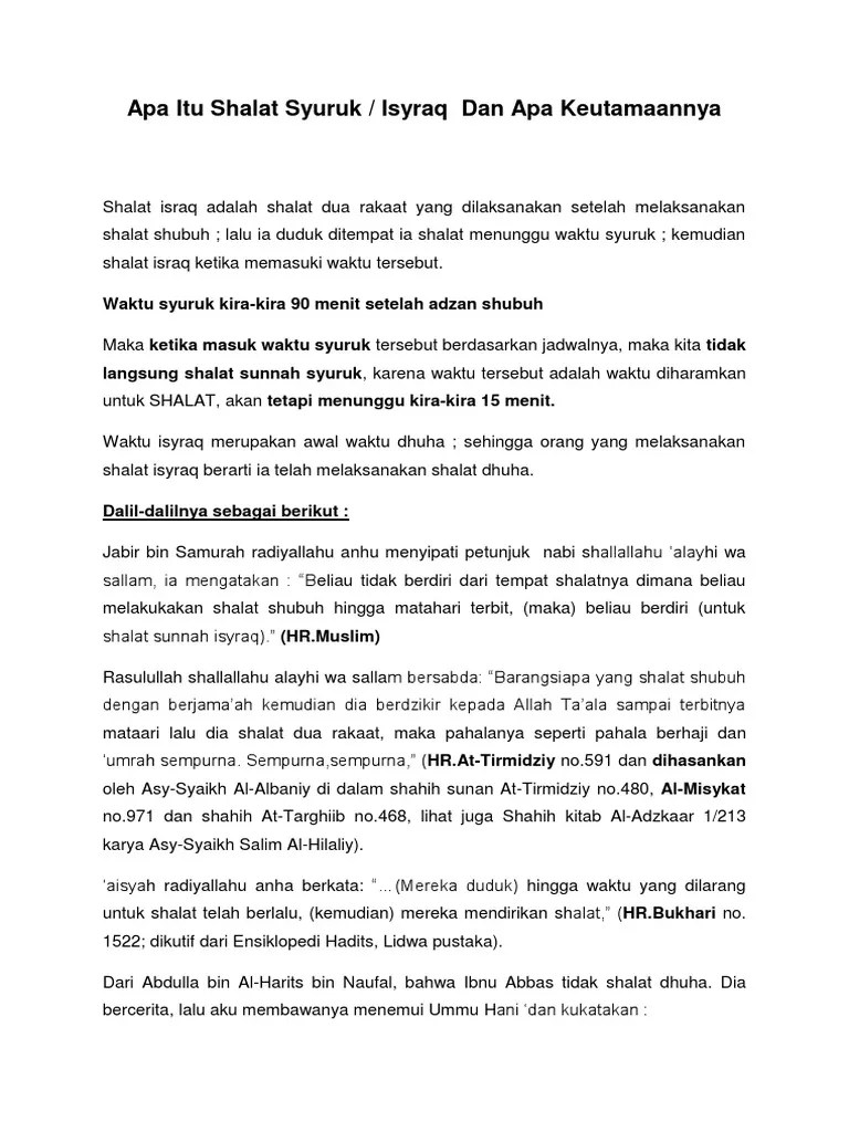 Sholat sunnah ini dinamakan sholat syuruq, karena dikerjakan pada waktu syuruq atau waktu terbitnya matahari. Maksud bertasbih dalam ayat 17 ialah salat. Sholat ini dilakukan setelah sebelumnya didahului dengan. Jazakallahu khairan wa barakallahu fik. Lihat arti dan definisi di jagokata.