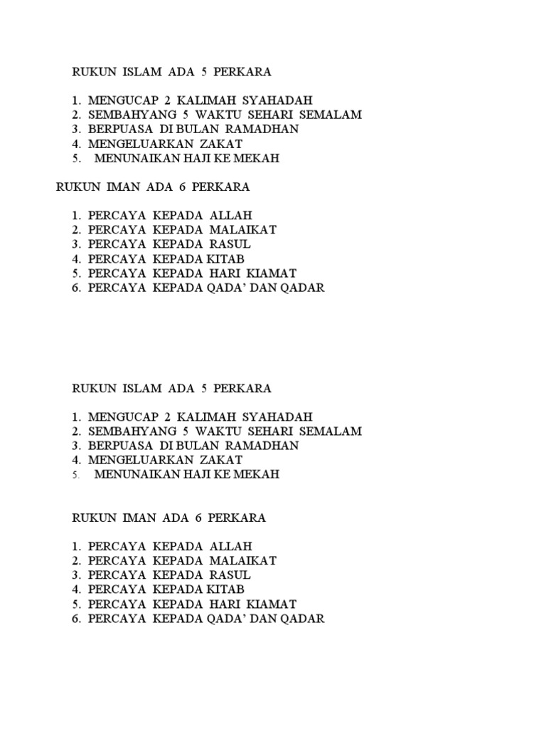 Rukun islam ada 5 perkara : Rukun islam ada lima ( 5 ). Agama islam itu dibangun atas lima perkara. Persaksian bahwa tiada tuhan yang berhak disembah. Music rukun islam ada 5 opik 100% free!
